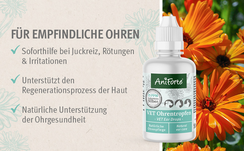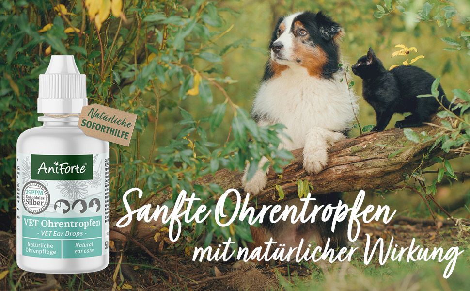 - For sensitive ears: our AniForte ear drops with colloidal silver are suitable for dogs, cats & small animals such as hamsters, rabbits, guinea pigs, etc