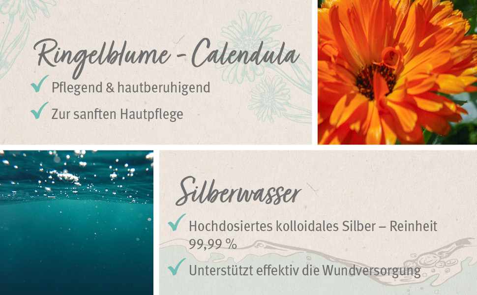 Silver water 99.99% (multi-distilled water, silver), natural marigold extract (calendula officinalis) | concentration: 25 ppm (25 mg/l)