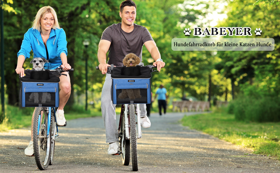 BABEYER Dog Bicycle Basket, Soft Bike Carrier with 4 Mesh Windows for Small Dogs, Cats and Puppies - Blue