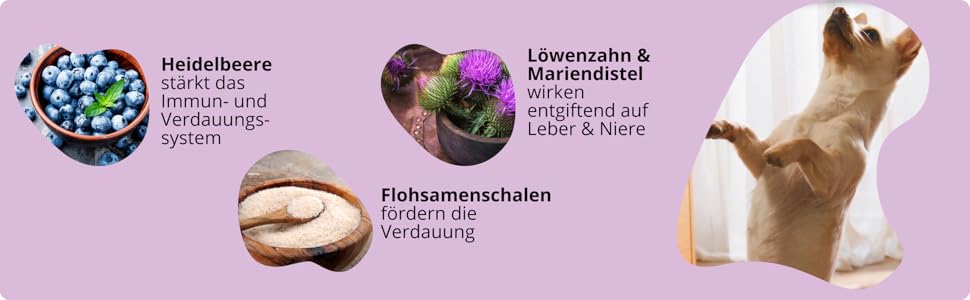 - Detoxification for a healthy intestinal flora: Blueberry and psyllium seeds promote the immune and digestive system. For detoxification and detoxification of stomach, intestines, liver and kidney support dandelion and milk thistle