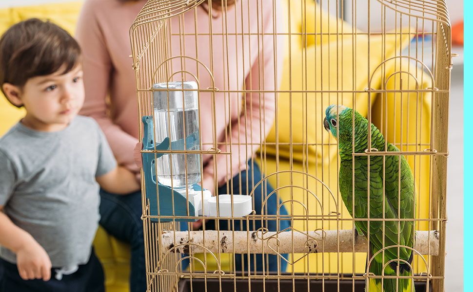 Die Vogeltränke wird zusammen mit dem Käfig befestigt und kann in den Käfig eingehängt werden, der zum Aufbewahren von Futter oder Wasser verwendet werden kann, um zu verhindern, dass Ihr Vogel versehentlich Futter-/Wassernäpfe auskippt.
