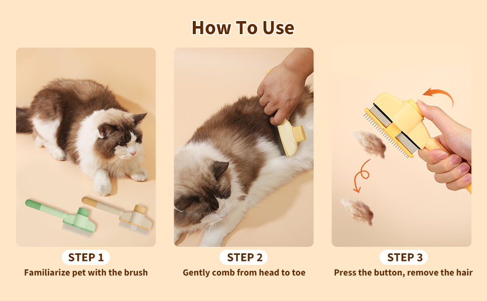- Self-cleaning 2-in-1 comb with one button: this pet hair removal comb offers a convenient solution for removing hair from the brush. Simplify the care process by using pet combs with two lengths for detangling, detangling and combing. It has long and short metal teeth. Flea and tick protection for cats