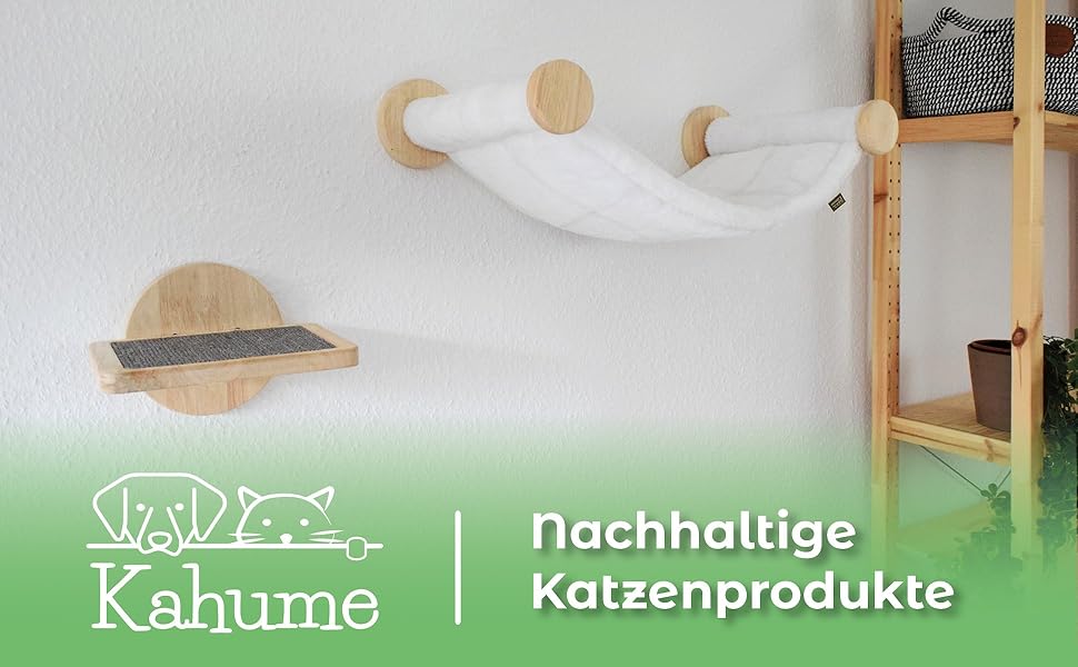 Kahume steht für innovative und nachhaltige Katzenmöbel. Unsere Gründer sind selbst Eltern zweier wundervoller Katzen. Als sie nach hochwertigen und nachhaltigen Katzenprodukten aus natürlichen Materialien gesucht haben, sind sie kaum fündig geworden. Aus diesem Umstand heraus wurde die Idee geboren, Produkte für Hunde und Katzen zu kreieren. Dabei sollten sie möglichst langlebig sein, aus nachwachsenden und natürlichen Rohstoffen bestehen, und sich in einem hochwertigen Design präsentieren. Unsere Artikel passen zusammen wie die Katze und der Pappkarton und sie sind universell einsetzbar. So können zum Beispiel die Bauteile für das Katzenhängebett auch für die Hängebrücke genutzt werden. Einige von unseren Produkten haben einen Katzenteppich oder Sisal mit eingearbeitet. Sie werden somit also häufig wie Kratzmöbel genutzt. Ob als Erweiterung für einen Kratzbaum oder als Element für Katzenwandparkour - die Möglichkeiten mit dem Kahume Katzenzubehör sind endlos.