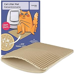 - The 2-layer honeycomb design catches the cat litter easily The litter of your cat can be easily tilted back into the toilet later. The toilet mat is two-layer and waterproof