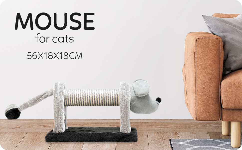 Der Kratzbaum Maus verfügt über ein attraktives und lustiges Design mit einem Plüsch-Maus-Kopf auf der einen Seite und einem niedlichen Schwanz auf der anderen Seite. Dieses dekorative Element zieht nicht nur die Aufmerksamkeit Ihrer Katze auf sich, sondern verleiht Ihrem Zuhause auch einen Hauch von Originalität und Charme.