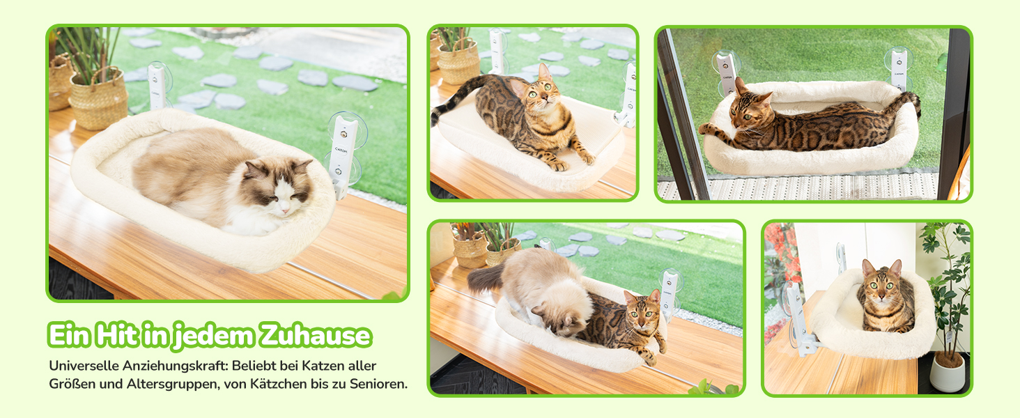 - Window seats for cats: this is the cat's favourite place. It is great for naps, sunbathing, bird watching and exploring kingdoms during the day and folds easily to close the blinds at night, and you don't even have to take them off the window