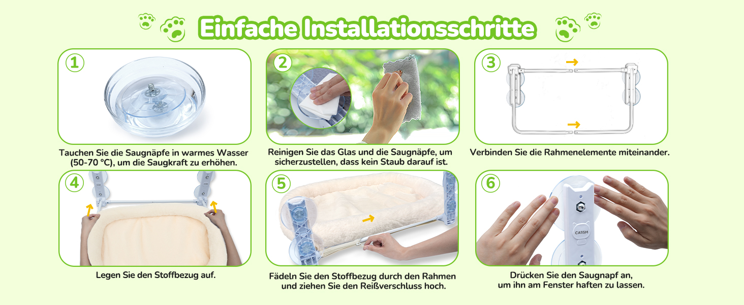 - Cat hammock tip: To ensure that the suction cups stick firmly to the window, soak them in hot water for 3 minutes to make them soft. Clean the window, attach the suction cups to the window and press them firmly to squeeze out the air