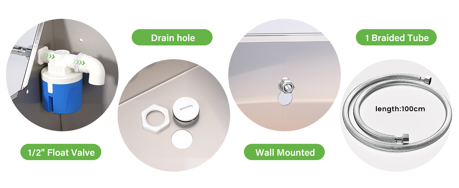 - Package list: 1 x stainless steel drinking trough, 1 x 1/2 inch float, 304 stainless steel braided pipe 80 cm (1/2 inch inner diameter, 39.4 inch length), 5 metre raw band, 1/2 to 3/4 connections, non-slip pads; the included accessories have everything you need for a hassle-free setup so you can connect the drinking trough directly to a 3/4 inch garden hose. Can connect to the extextextthe terrace or the farm