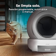 - SELF CLEANING Forget the scoop with this self-cleaning cat litter box that allows you to choose between the programmable cleaning option, automatically or manually. ELIMINATE BAD ODORS Equipped with an advanced carbon filter, this automatic cat litter box traps aggressive odors, ensuring a clean and pleasant environment at all times.