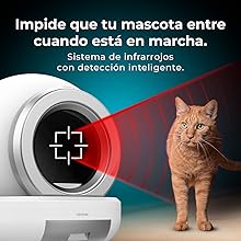 - Accident Prevention The infrared security system with intelligent detection prevents your pet from possible accidents. When the litter box is in operation and your pet wants to enter, it detects its presence and stops automatically.