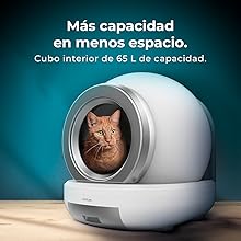 Sein Inneneimer hat ein extra großes Fassungsvermögen von 65 Litern für vollen Komfort für Ihre Katze. Darüber hinaus passt die kompaktere Größe perfekt in jeden Raum, ohne auf Funktionalität zu verzichten.