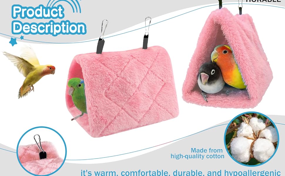 - FeaturesWith a hook design, it can be easily hung in a bird cage, providing a warm and comfortable home for your beloved pets or small animals.