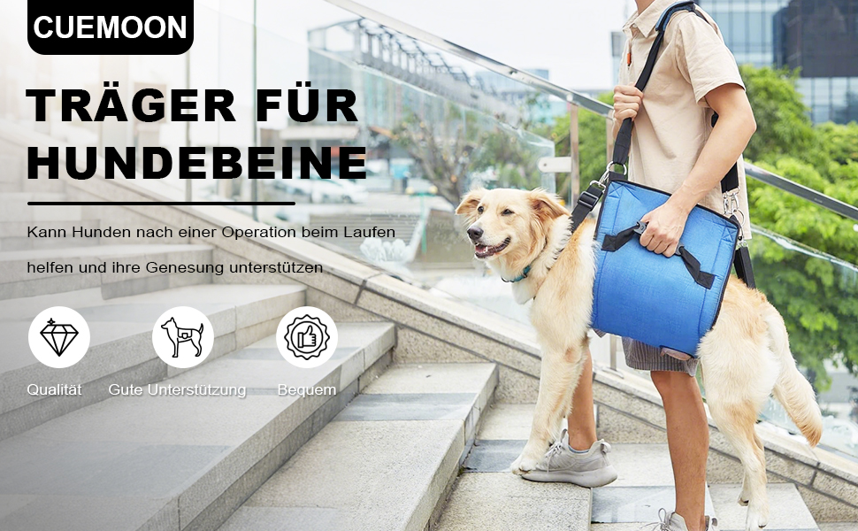 CUEMOON Dog Carrier Strap, Blue Emergency Backpack Support for Rehabilitation Dog Lift Harness, Dog Carrier for Older Dogs, Joint Injuries, XXL