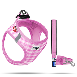 - Curli VP-Pici air mesh puppy vest harness + basic lead, pink circles.