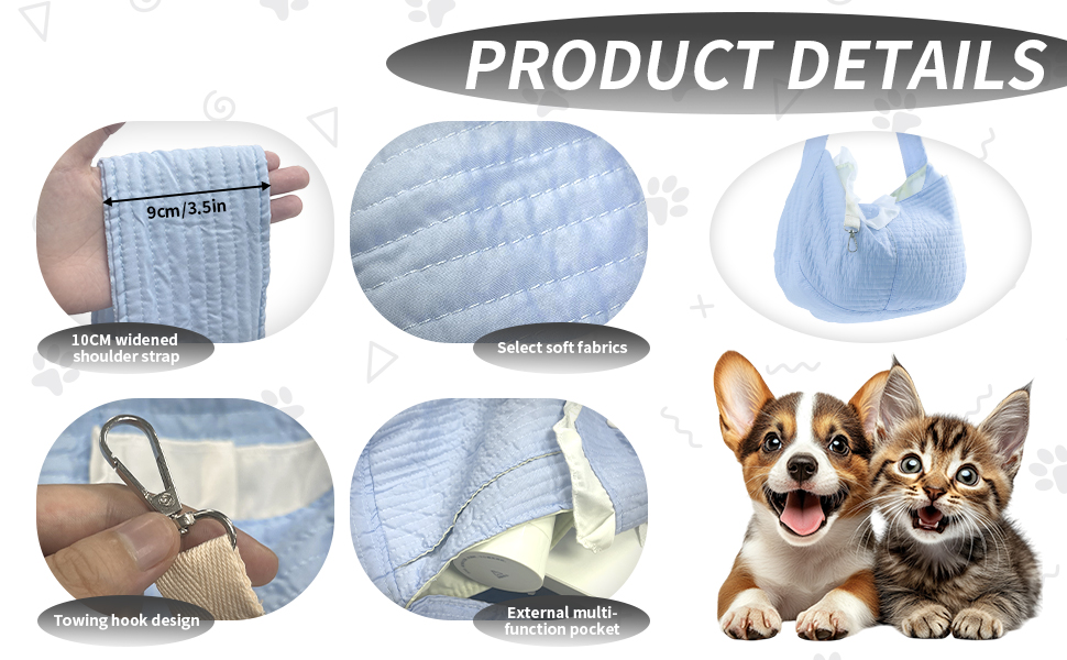 - 10 cm wide shoulder strap: the wide shoulder strap reduces pressure on the shoulder and you will not feel fatigue when you use the dog sling to carry your beloved pet for a long time.