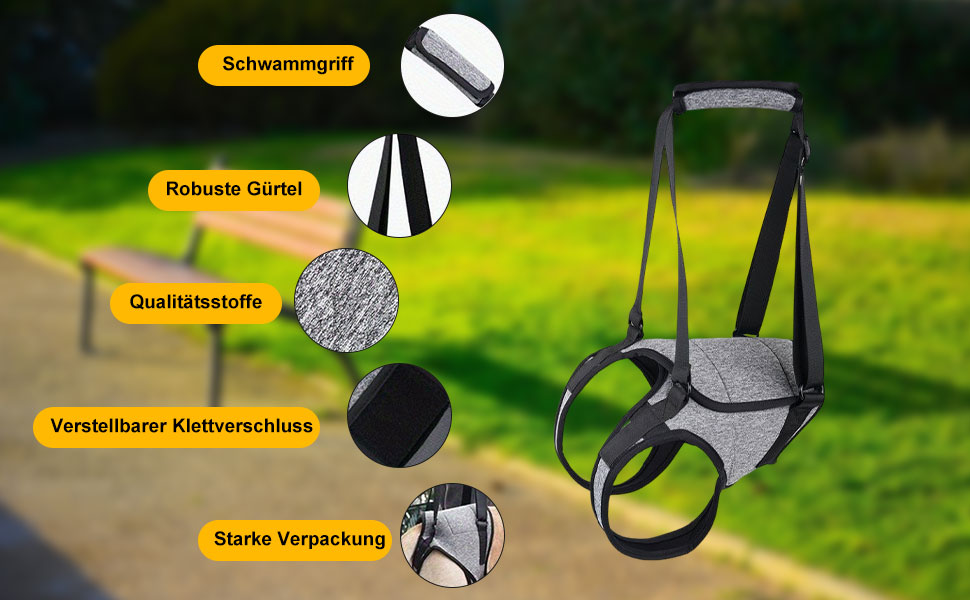 - Dog back care: This dog border is specially designed for leg injuries, disabilities, arthritis, post-operative or back weakness and older dogs. The ergonomic design surrounds the body securely, ensures stability and high comfort and helps with daily activities such as walking, climbing stairs and vehicles up and down.