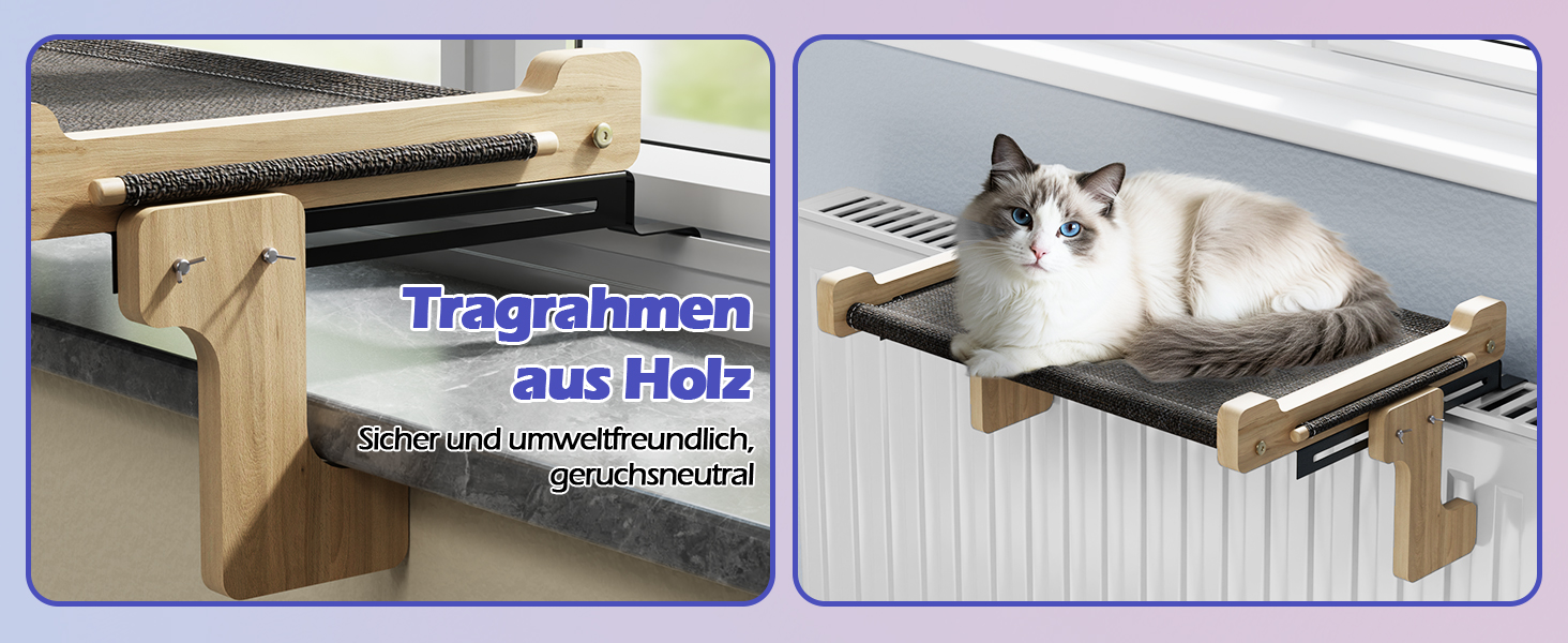 - Spacious & Anti-Sag Design: Enjoy a spacious 17.7" x 13" lying surface for your cat, framed by sturdy wooden bars along all four edges to prevent fabric from sagging. Perfect for large cats or multiple pets to lounge comfortably, take a nap or sunbath.