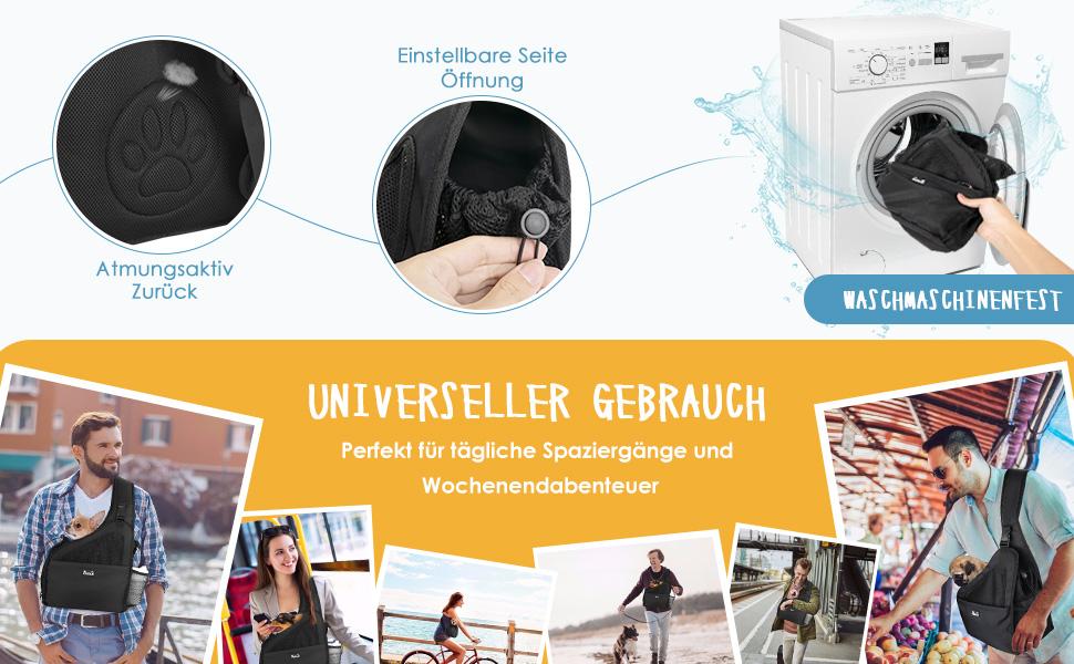 - Large storage capacity: zip pockets on the front and inside the sling can be filled with treats, waste bags, wallet, mobile phone or keychain. The pocket on the side of the bag is designed for water bottles. With these bags, you actually have your hands free when you take your dogs or cats with you for daily walks, weekend adventures and other outdoor activities.