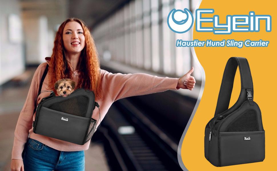 Eyein Dog Friendly Sling Dogs, Breathable Hands-Free Travel Bag for Small Pets with Adjustable Straps, Hardboard Base Safety Belt, for Dogs Under 5.5 kg, Black
