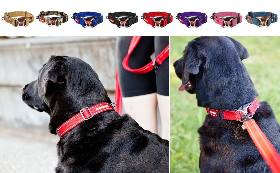 - SUPERIOR SAFETY & FEATURES Reflective stitching is incorporated for increased safety at night, and an integrated ID attachment is included for the dog tags. Our double up collar offers you safety and comfort while still doubling the strength with our attractive and durable double D-ring collar.