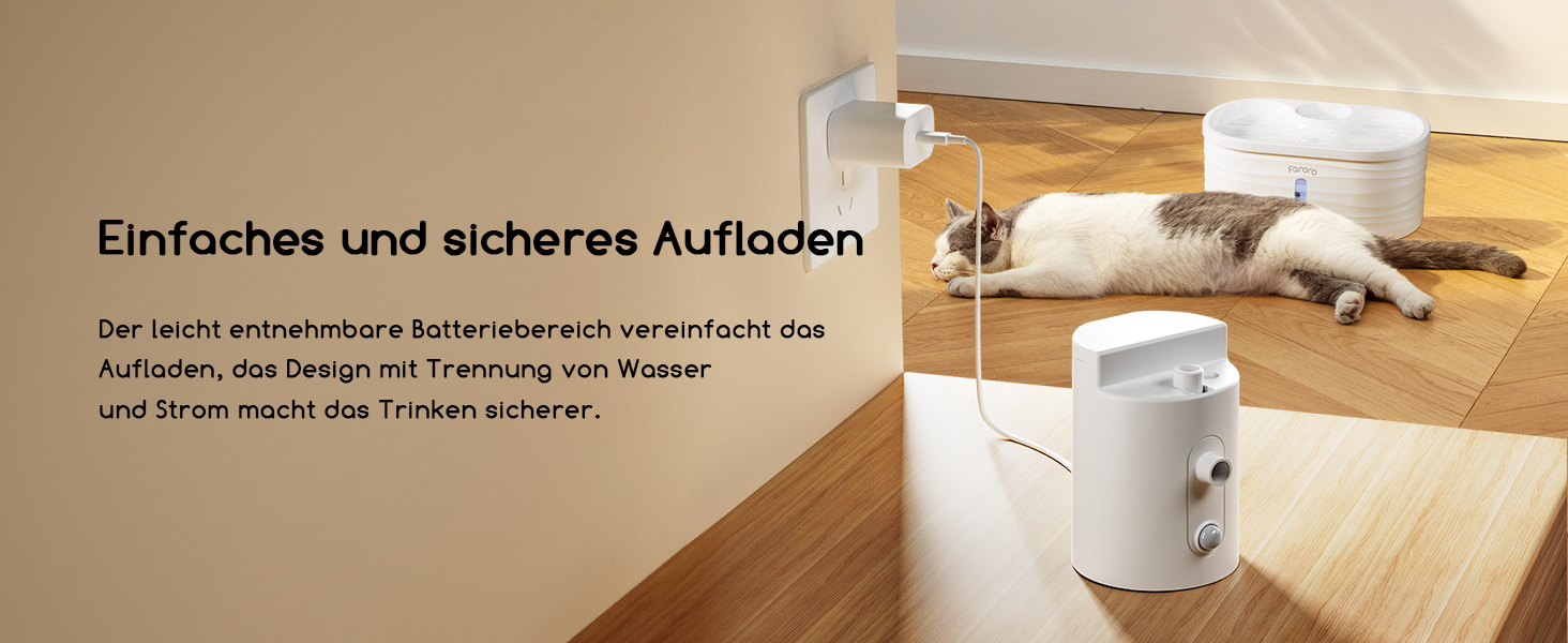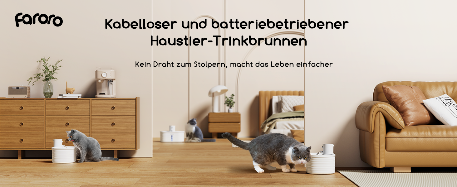 - No more annoying cables: This cat fountain is powered by a battery, so you can place it anywhere you and your furry friend prefer it, e.g. in your kitchen, bedroom, living room or any other place. Plus, you don't have to worry about your playful furry friend chewing on the cables and causing danger, ensuring a safe and easy drinking experience