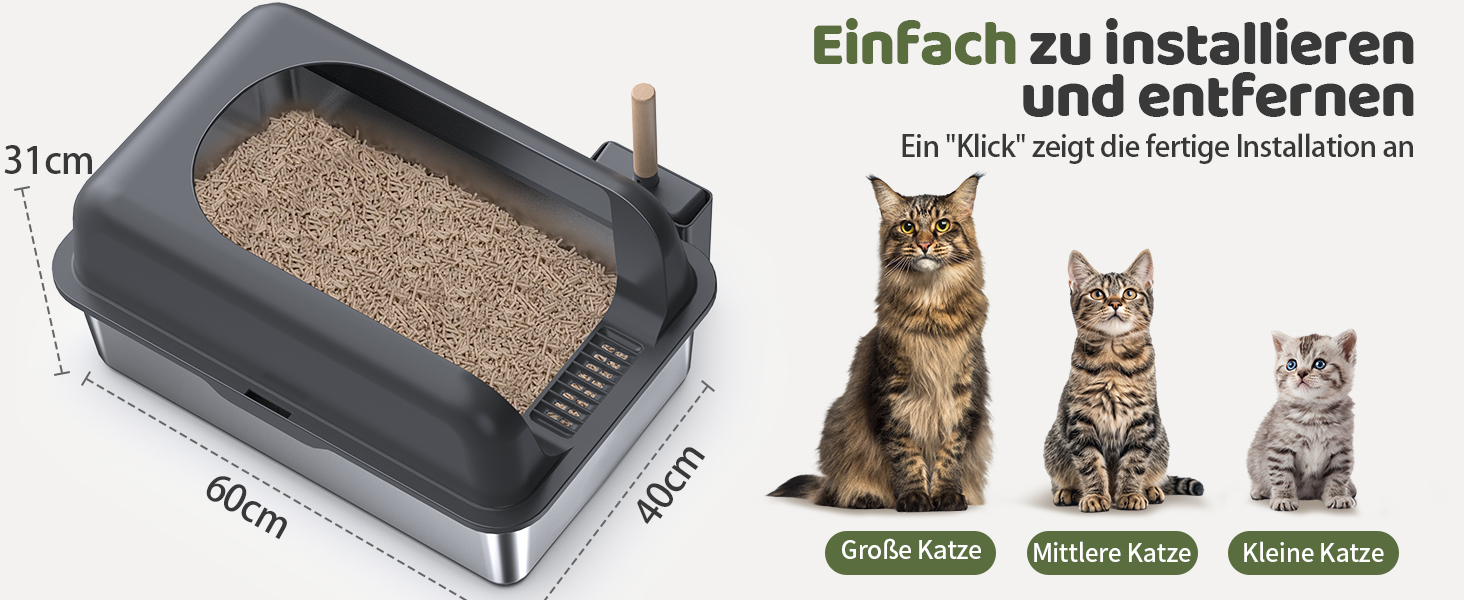 - High side walls & secure attachment system for waterproof cat litter box containment: The 15 cm high removable walls with snap closures prevent litter and urine leakage from scattering during digging. Combined with a seamless stainless steel tray, this design ensures that no liquid seeps through the joints. Ideal for energetic cats, it keeps the floor clean while allowing easy disassembly for cleaning.