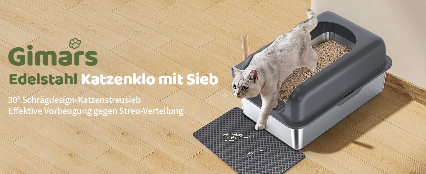 Gimars XL Katzenklo Edelstahl, Große Katzentoilette aus Metall 20L mit Streuschaufel & Matte, Edelstahl Katzenklo für mittelgroße & große Katzen