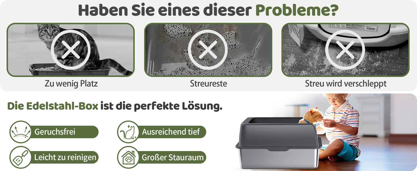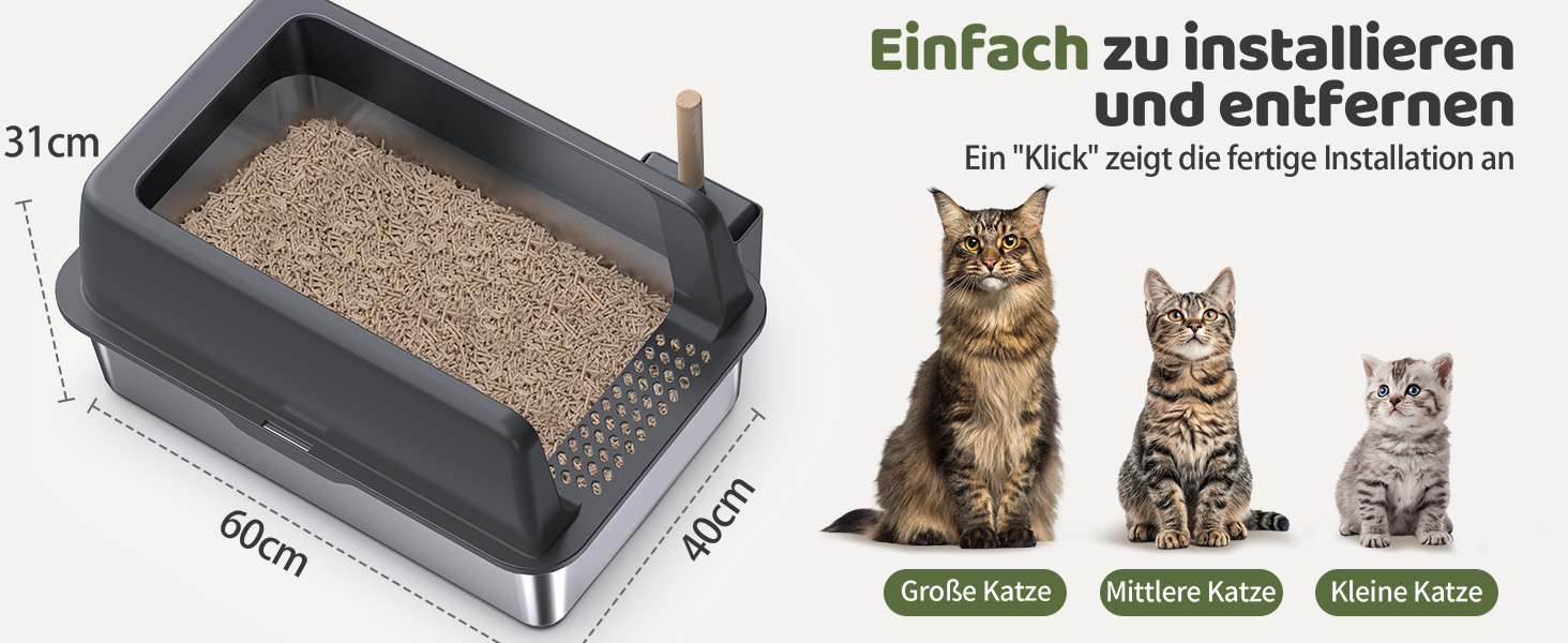 - High side walls & secure attachment system for waterproof cat litter box containment: The 15 cm high removable walls with snap closures prevent litter and urine leakage from scattering during digging. Combined with a seamless stainless steel tray, this design ensures that no liquid seeps through the joints. Ideal for energetic cats, it keeps the floor clean while allowing easy disassembly for cleaning.
