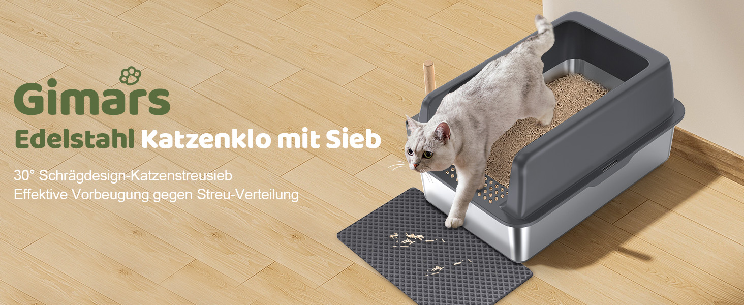 Gimars XL Metal Cat Litter Tray, Large Cat Litter Tray Stainless Steel 20 L with Shovel & Mat, Robust Metal Cat Litter Tray, Stainless Steel Cat Litter Tray for Large and Medium Cats