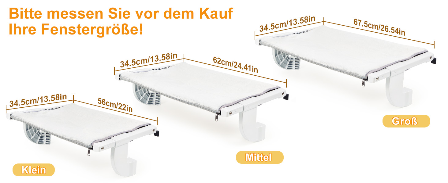 - Important note: our cat hammock is 26.8 inches/68 cm long. Please measure your installation location before purchasing. There must be a gap or raised edge with a depth of more than 3 cm / 1.2 inches so that the hook can hang on it. If you have any questions, please feel free to contact us