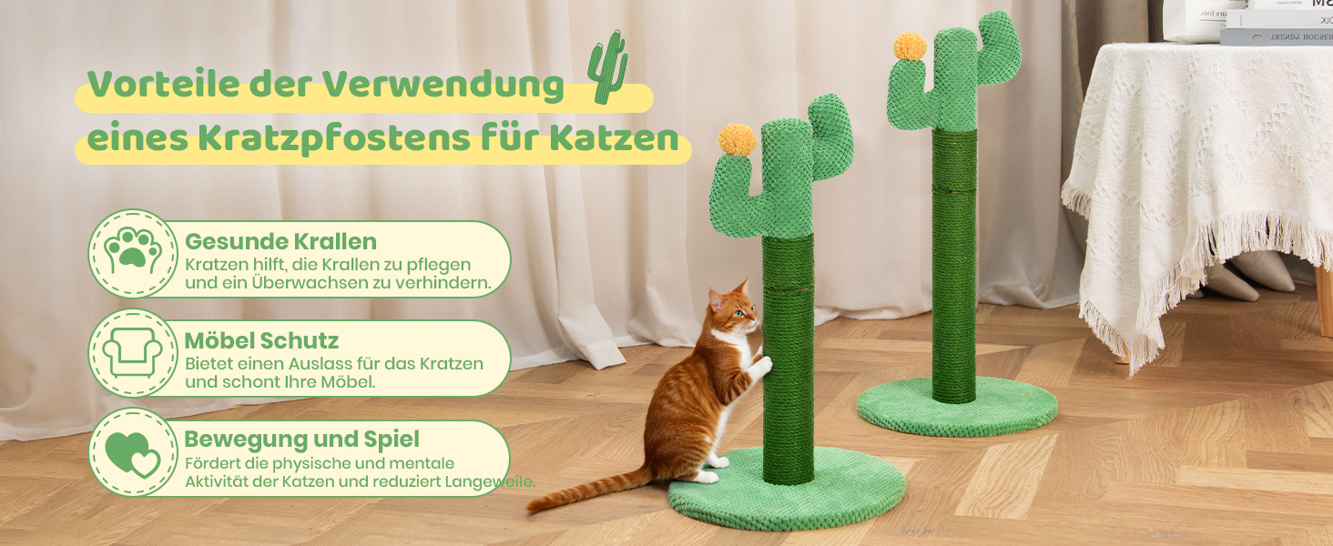 - NO MORE SCRATCH MARKS Our scratching post meets your cat's natural scratching instincts while protecting your furniture. Your feline companions can use it for exercise and stress relief while leaving your valuable furniture intact.