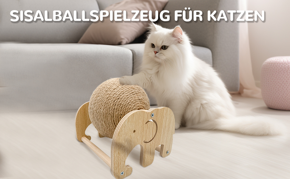 HYSHLC Cat Toy Sisal Ball, Cat Scratching Ball, Scratching Post, Scratching Ball, Sisal Ball, Large, Playground and Tripod, Sisal Ball Cat for Dogs, Kittens, Cats (Elephant Stand)