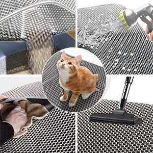 - Easy to clean: cleaning the cat litter box has never been so effortless. With the middle opening of the litter tray mat, you can easily pour back the litter and clean the mat. After washing, the mat does not leave an unpleasant smell.