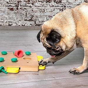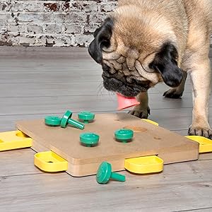 The high-quality and sturdy wooden board as well as the plastic parts used are robust and easy and hygienic to clean. So your dog and owner will enjoy this great toy for a long time.
