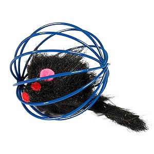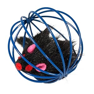 This plush mouse in fur look encourages cats to have extensive catching games. Since the mouse is trapped in a grid ball that moves and rolls away when touched, it is not easy for the house cat to catch the mouse. So long fun is guaranteed.