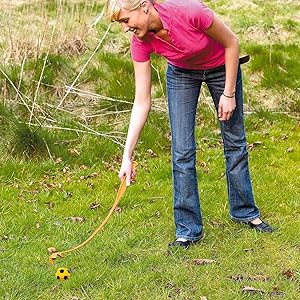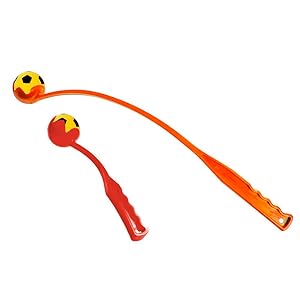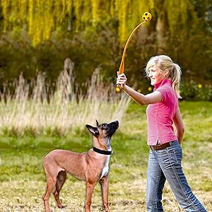 With the plastic slingshot, the ball can be thrown over many metres without effort. The dog will love chasing, catching, tracking and fetching the foam rubber ball flying through the air. Once the dog has brought the ball back, it can be easily picked up with the launcher.