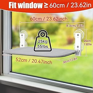 - High load capacity for your darlings: Our cat window lounger and cat bed window with the hammock cat is a real eye-catcher. The robust stainless steel construction and the four lifting suction cups for windows easily hold up to 25 kg. With a size of 52 x 30 cm, it can easily accommodate larger cats or kittens. Simply perfect for your furry family member