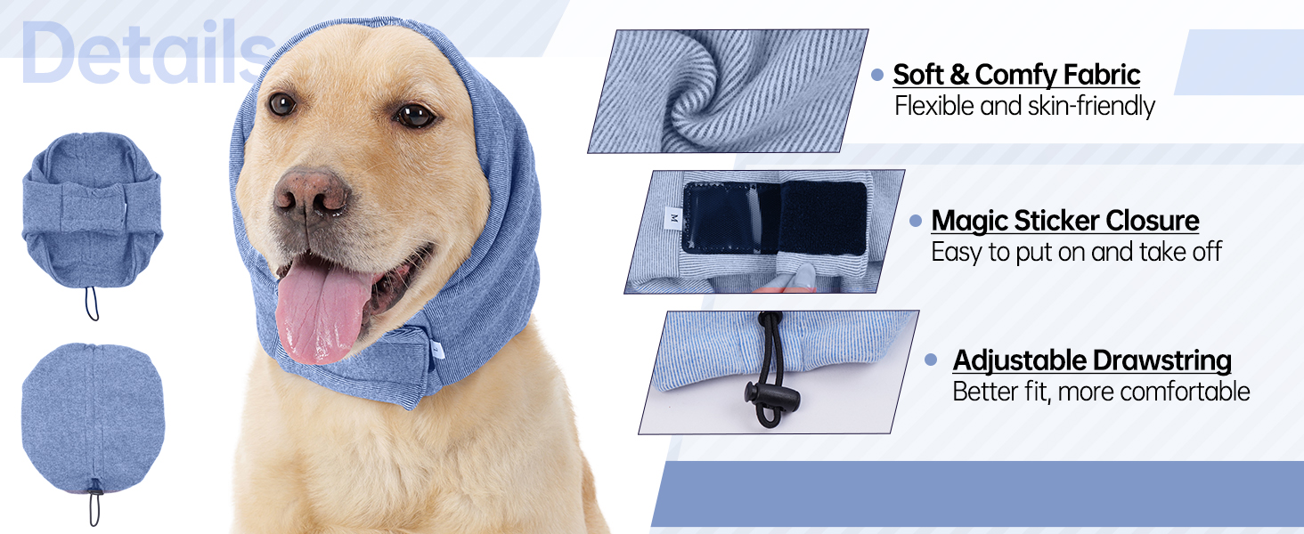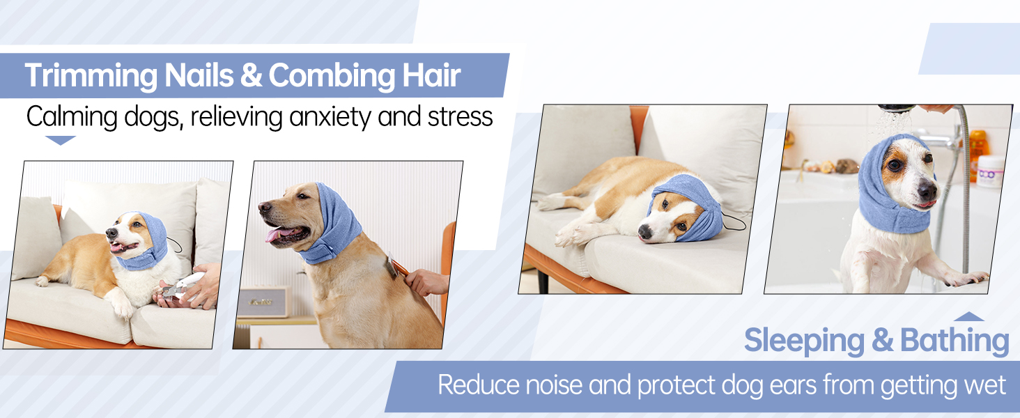 - ANXIETY RELIEF Fully wrapped design soothes pets, reduces anxiety and protects ears from loud sounds like thunder, fireworks