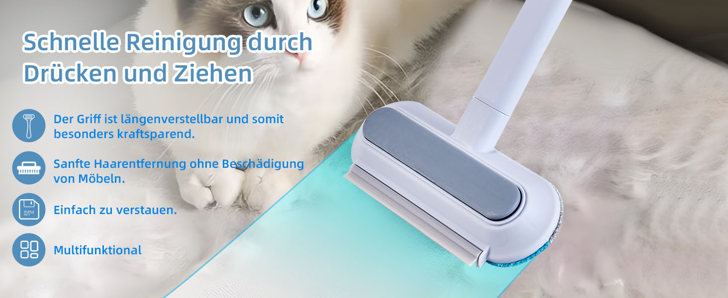 - Pet Hair Remover with Handle: The unique design of the combs penetrates deep into the fibres of the fabric and removes stubborn hair. In combination with a squeegee, hair on hard surfaces such as windows and tile joints can be removed in one step, making cleaning your home more efficient.