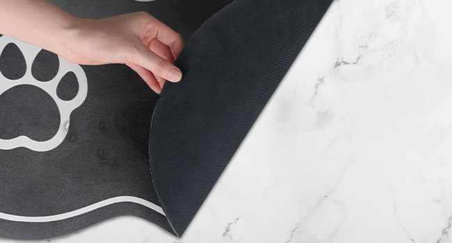 - Quick-drying and absorbency: the feeding mat for cats and dogs is a quick-drying, absorbent material. Don't worry about water flowing through the mat to the floor, the water absorption of the bowl mat absorbs water quickly. The quick drying function reduces your cleaning time.