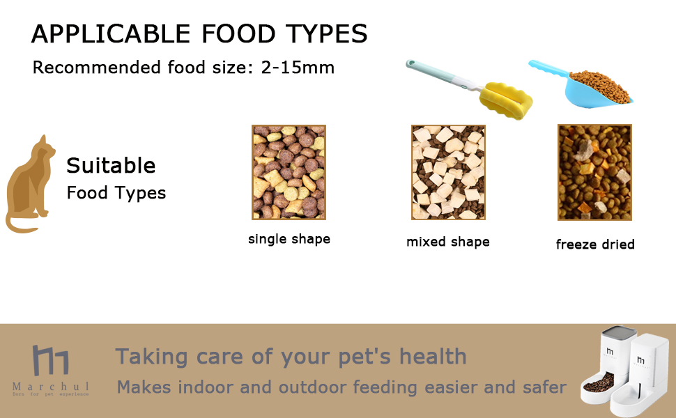 - Fresh quantity: automatic cat feeder is double moisture resistant and fresh to avoid oxidation of the pet food. Airtight and opaque design. 20 ramp rail, wide output for smooth food output, suitable for most cat food and dog foods on the market.