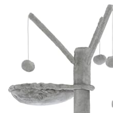 Oben auf dem Kratzbaum befinden sich 1 Plüschkorb und 3 Elastische Spielbälle, die Katzen dabei helfen können, besser zu spielen und zu schlafen.