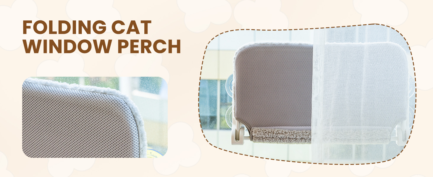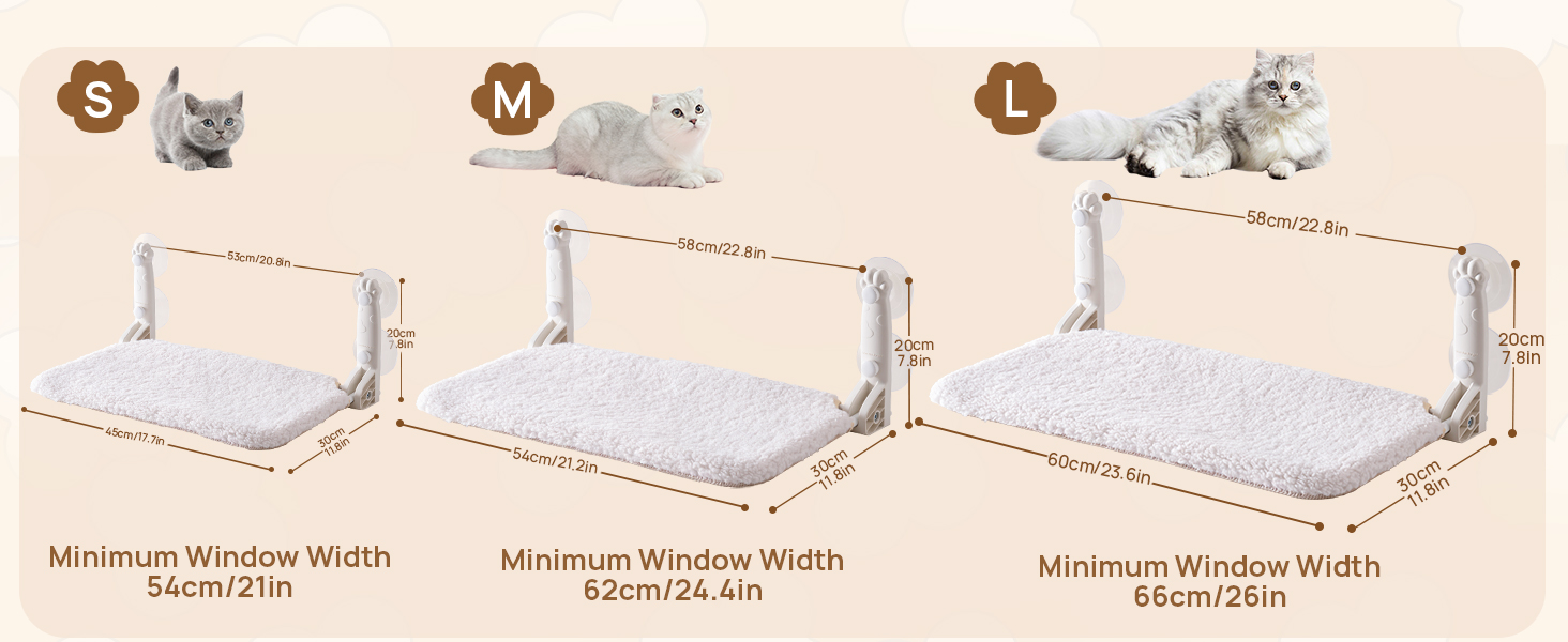 MEWOOFUN Soft Cat Window Hammock - 54 x 30 cm Foldable Cat Window Bed with Reversible Mat, Sturdy Cat Hammock Holds up to 18 kg (Beige - with Bed, M)