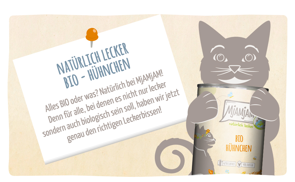 MjAMjAM Premium Wet Food for Cats - Naturally Delicious - Organic Chicken, Pack of 6 (6 x 200 g), Grain-Free with Extra Meat