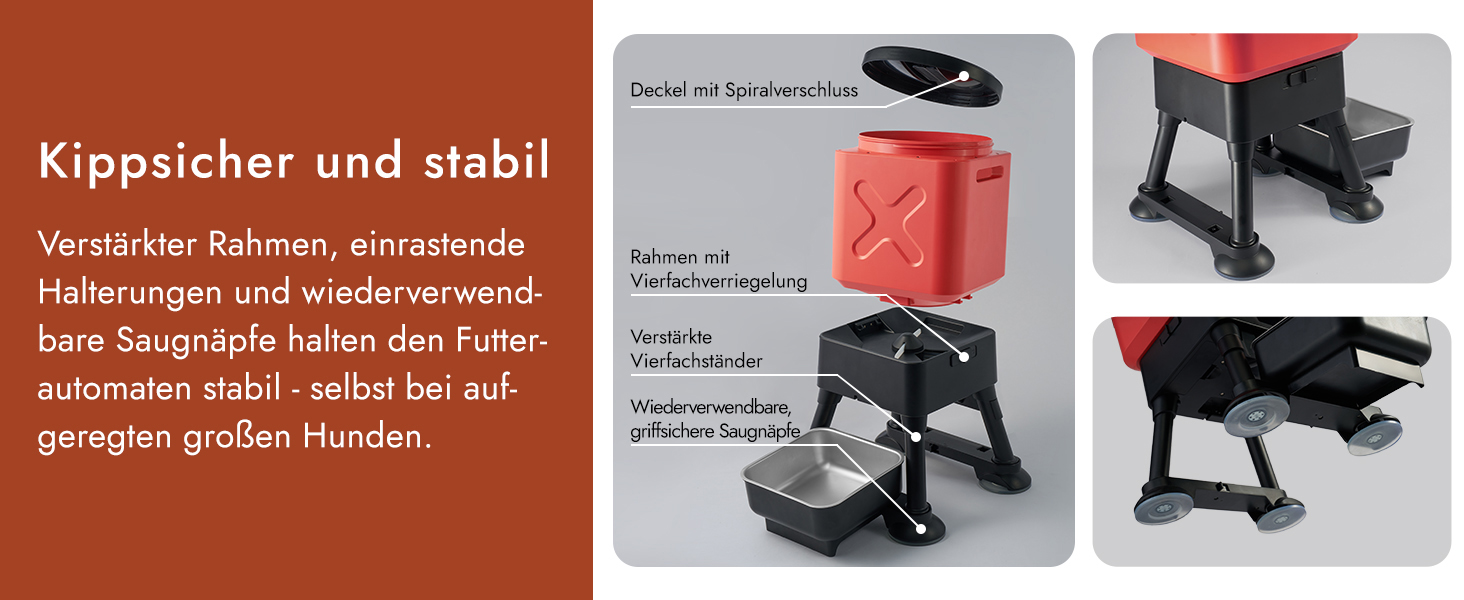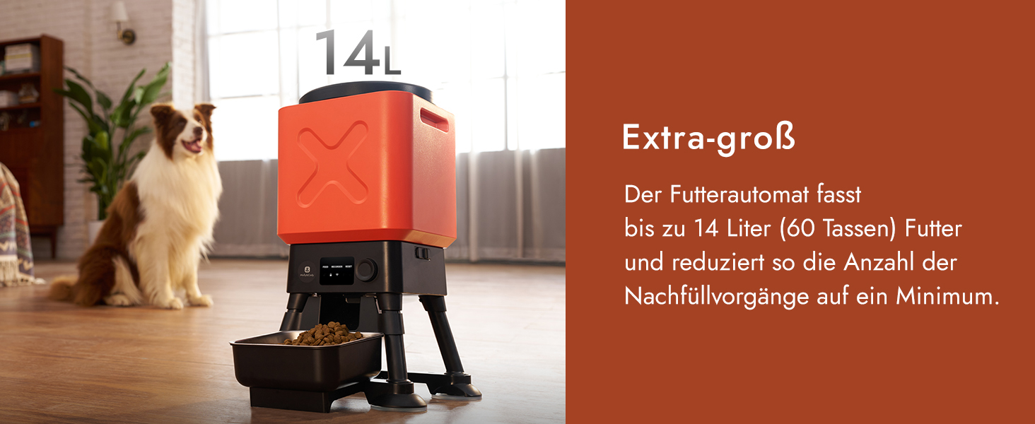 - 14 litre capacity, extra large capacity: designed for large and particularly large dogs. With a storage time of up to 30 days, the need for frequent refills is reduced and ensures that your pet receives a balanced diet without constant attention. The closed design with a capacity of 14 litres keeps food fresh, prevents spoilage and saves space during storage