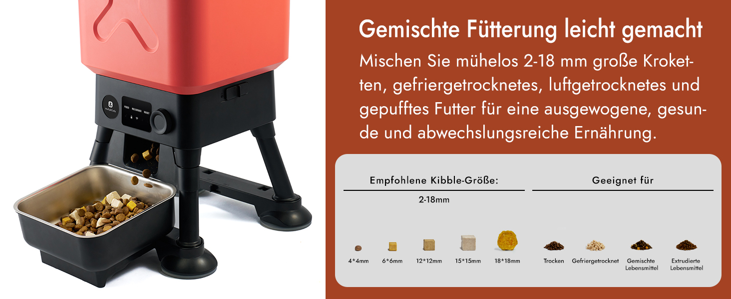 - Anti-clogging technology: chunky dog food with a thoughtful design that does not clog and makes eating easier. The advanced dispenser system combines anti-clogging technology with a powerful motor specially designed for chunky dog food and freeze dried treats