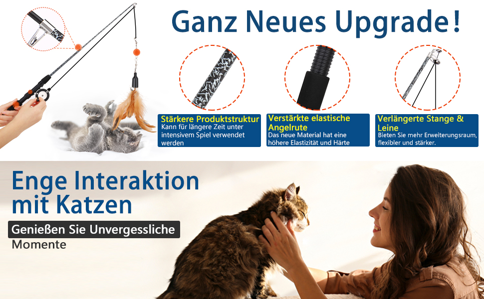 It teats the cat in a fun way and encourages them to exercise. Lifelike feathers, dragonflies and baits like flying fish inspire the cat's hunting instinct.