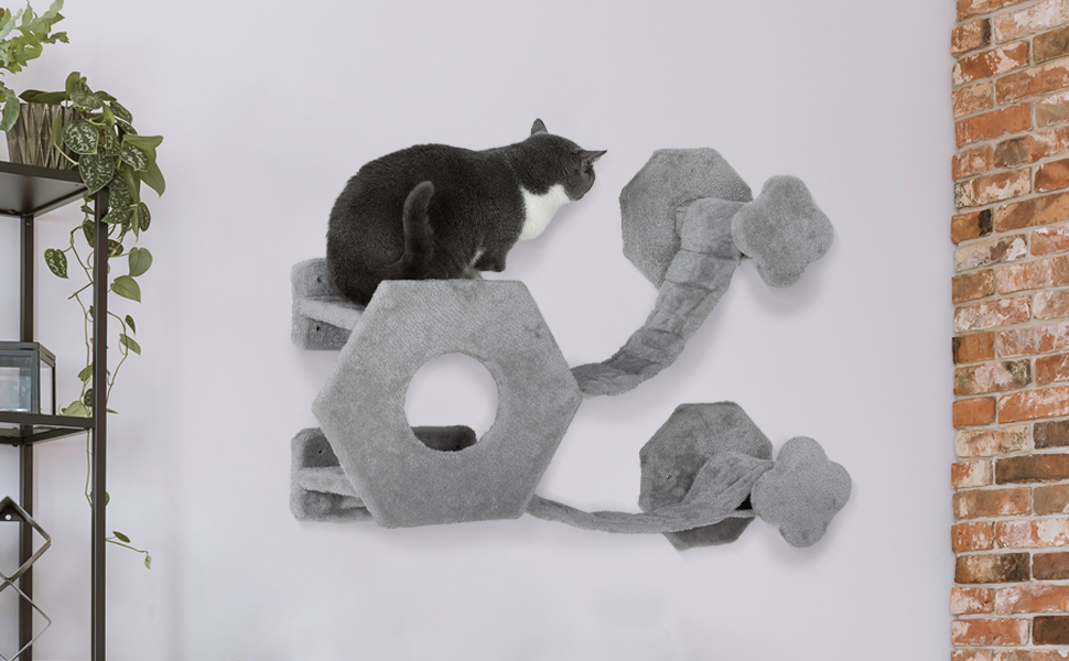 - SPACE SAVING DESIGN Thanks to the wall mounted construction, you save valuable floor space; The soft ladders of the cat lounger can be flexibly installed on either side or only one side for easy access