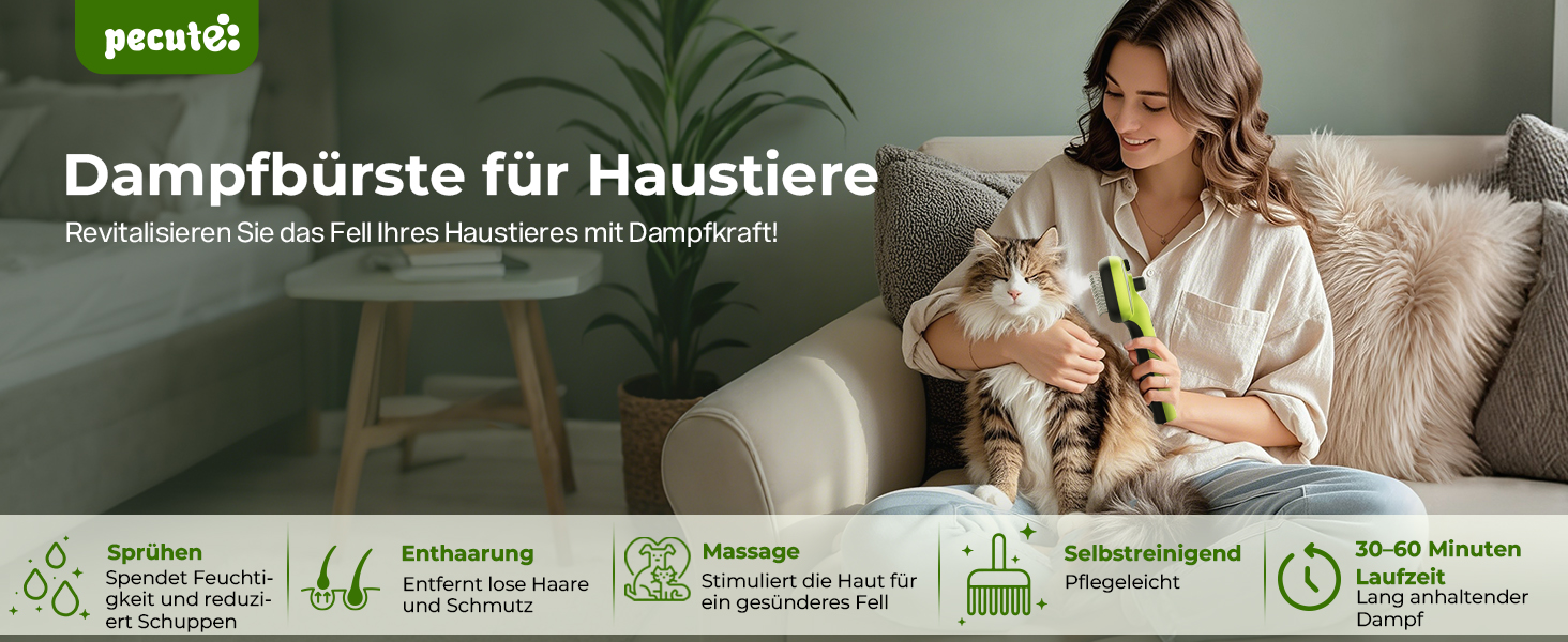pecute Cat Brush with Steam, Multifunctional Cat Steamy Brush, Cat Brush with Spray Roße Capacity Water Tank, Steam Brush Cat Massage Comb for Long Hair Dogs Cats, Cool Mist Only (Green)