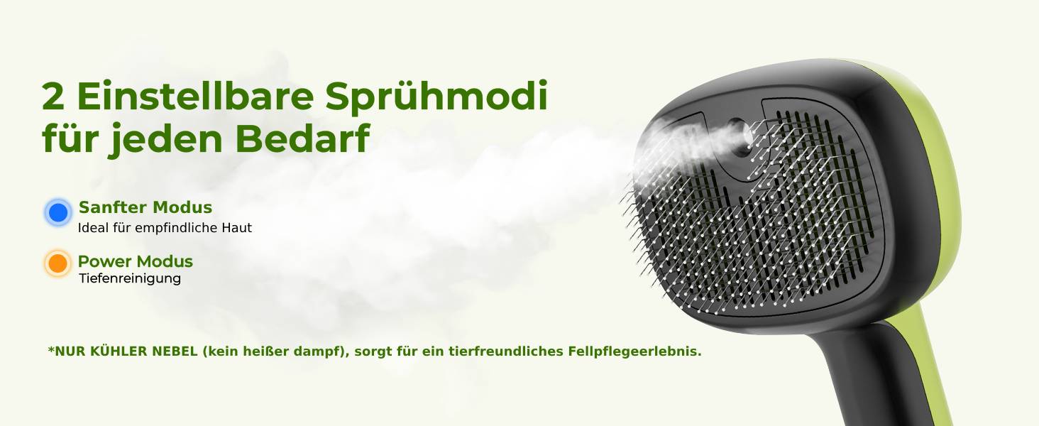 - 2-stage spray function - ideal moisture control: choose between fine spray mist for gentle moisture supply or intensive spray for deep care for heavily matted fur. The dual function effectively reduces static charge, loosens knots and makes the coat supple. Note: Our brushes only convert water into mist, they do not heat it.
